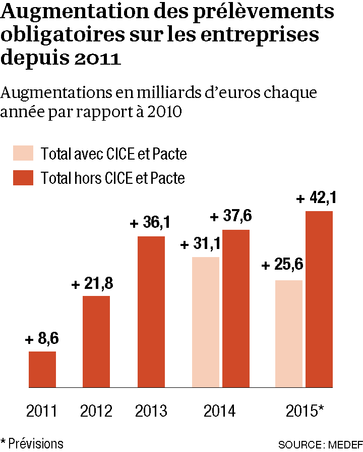 RT @Lopinion_fr: "+ 7 milliards d'euros d'impôts en 2015 pour les #entreprises" @GeoffroyRDB (@Medef) http://t.co/FVuLAjgSIg (abo) http://t… aide.entreprise (@aide_entreprise) December 01, 2014 Le Premier ministre a beau déclarer sa flamme aux entreprises,...